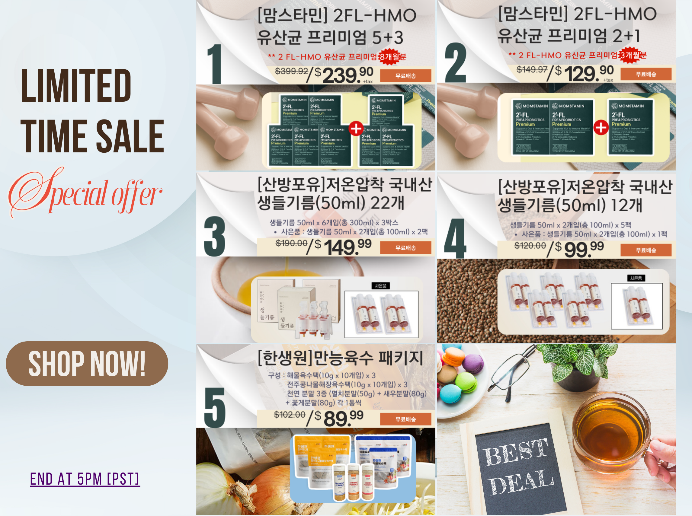 D. Sanbangforyou Korean Raw Perilla Oil 5 Packs + 1 Bonus Pack (2 bottles/pack)