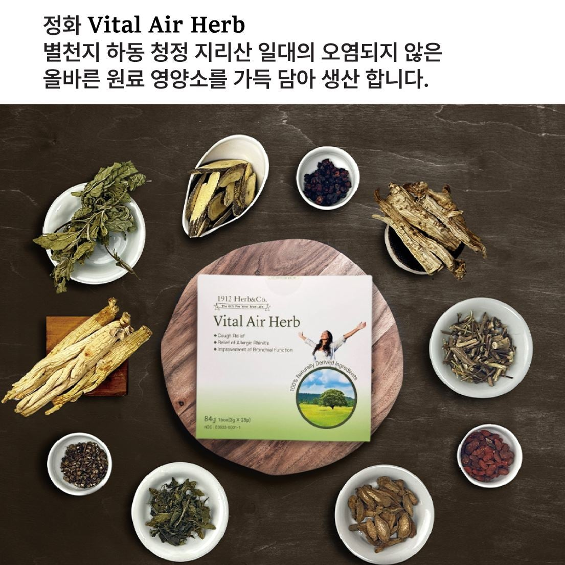 "1912Herb&Co. 바이러스성 기침, 폐렴, 천식 치료를 위한 Vital Air Herb 기관지 기능 개선 OTC 의약품."