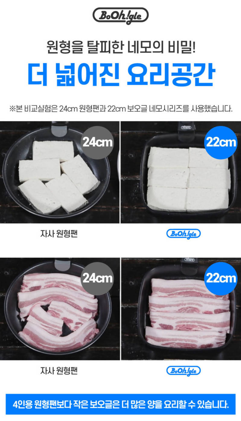 남는 공간 걱정없이! 요리활용도를 높인 사각디자인! 보오글 네모팬