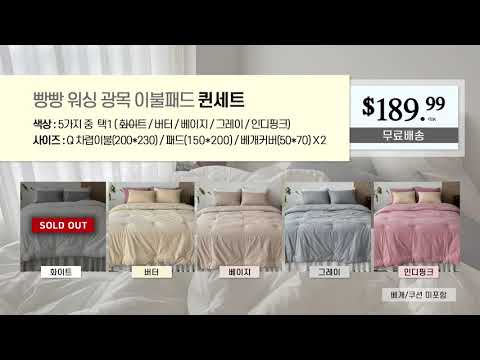 빵빵 워싱 코튼 침구 세트 퀸 구성 : -차렵이불 1개, 패드 1개, 베개 커버 2개